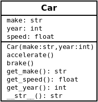 The goal for this activity is to implement a Car class so that it conforms to the UML below: